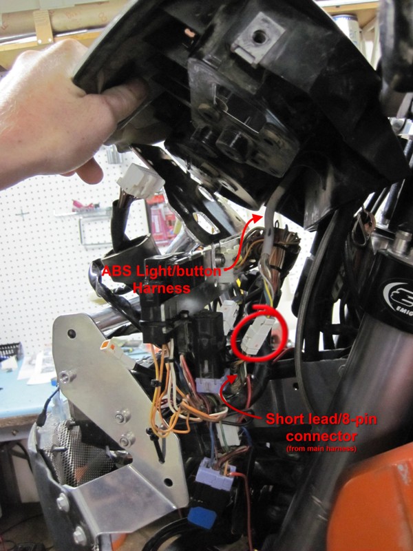 Due to an unavoidable collision with a rock and bush, I had to replace the elaborate aluminum bracket(ry) that suspends the gauge cluster, windshield, headlight and in the case of the EFI 990's, a substantial amount of wiring and relays and the ECU and the like up there out front of the bike.